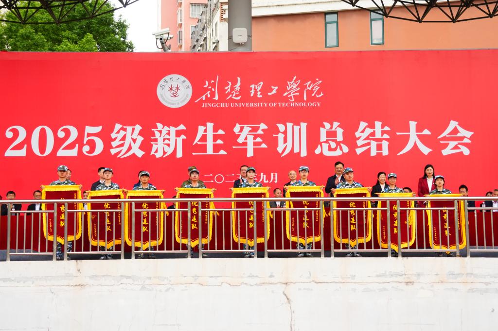 会上对2025级军训学生先进集体和先进个人进行表彰,并颁奖、授旗。优秀学员代表张必元同学、优秀指导员代表高芳佳发言,与大家分享了军训期间的成长感悟与收获。