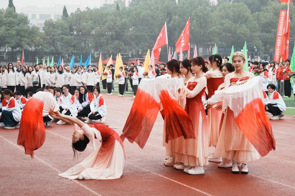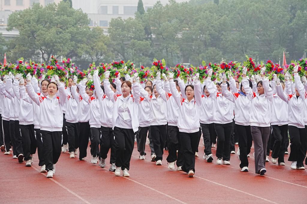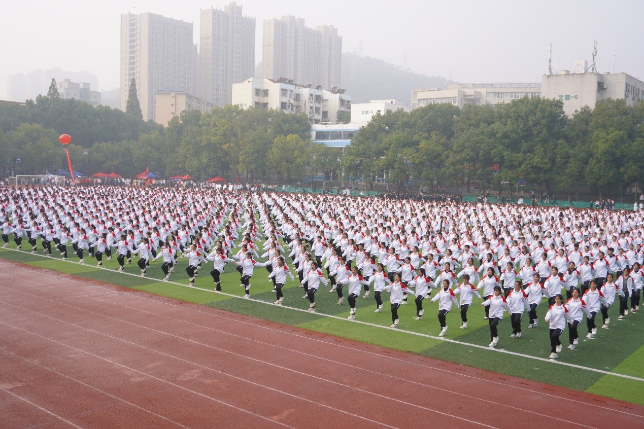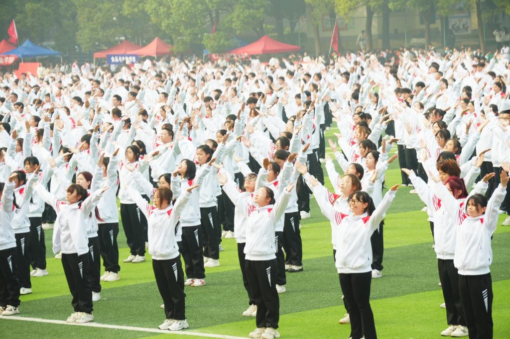 开幕式表演将现场气氛推向高潮。1600名学子身着校服,在明快激昂的广播体操乐曲中舒展肢体,抬手、弯腰、踢腿等动作规范标准、整齐划一。纯净的白色方阵与运动场交相辉映,呈现出磅礴的气势与视觉美感。