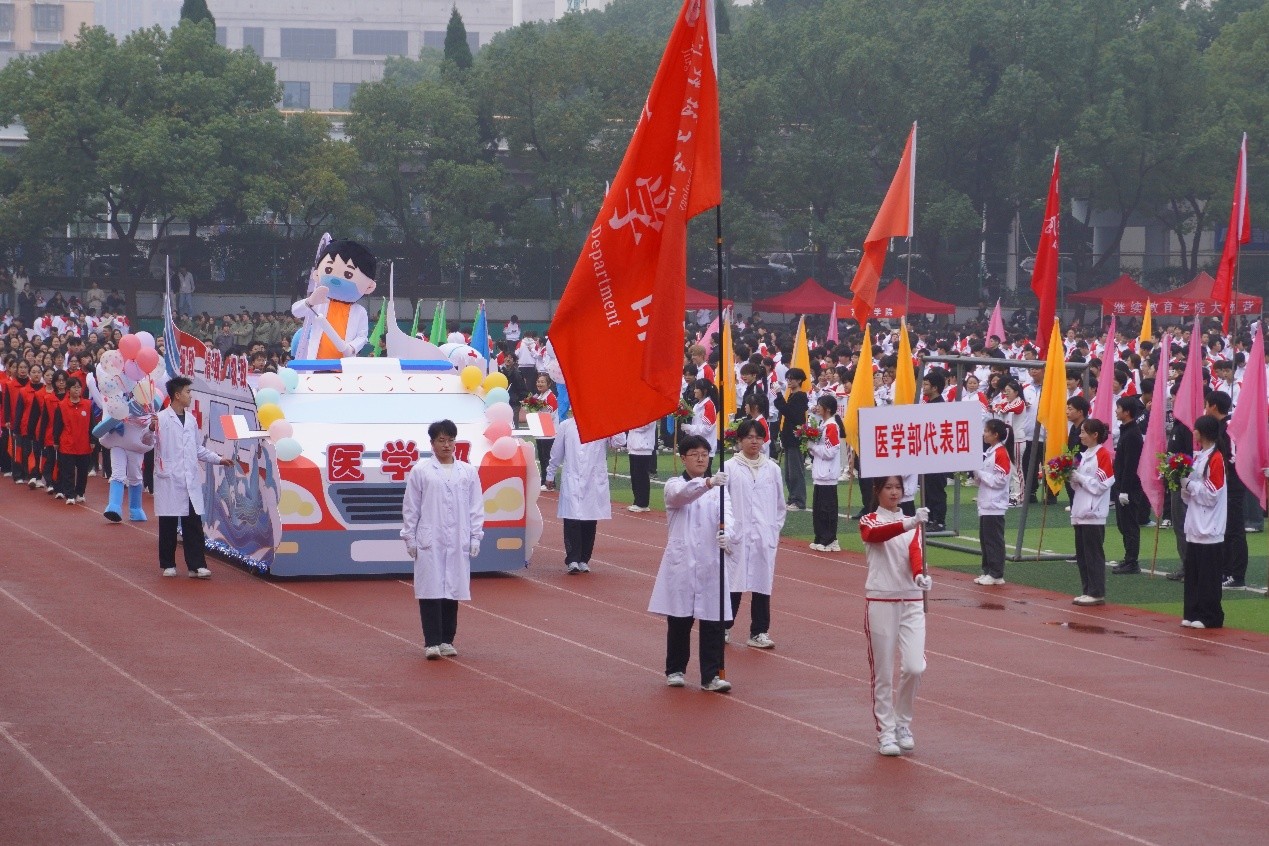 伴随着雄壮的《义勇军进行曲》,国旗护卫队迈着铿锵有力的步伐,手擎五星红旗率先入场。彩旗方阵、鲜花队和裁判员队伍紧随其后,五彩旗帜迎风招展,绚丽花束绽放风采。15个运动员方阵步伐整齐、口号嘹亮、精神饱满,带来一连串别出心裁的特色表演,酷炫的机器人舞蹈、青春活力的啦啦操、专业严谨的急救演示等内容依次呈现。现场掌声与欢呼声不断,青春气息在歌舞中肆意飞扬,充分展现了荆楚学子蓬勃向上的精神风貌。