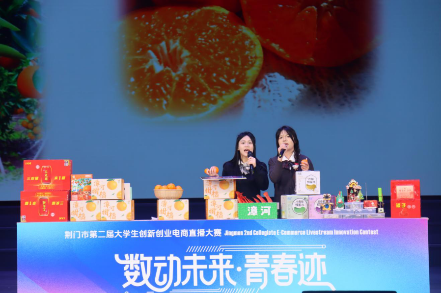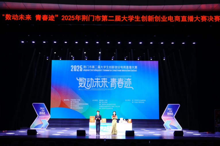 近日,“数动未来·青春迹”荆门市第二届大学生创新创业电商直播大赛决赛在荆楚理工会堂举行。荆门市人大常委会副主任丁萍,校党委副书记郑艳出席活动。