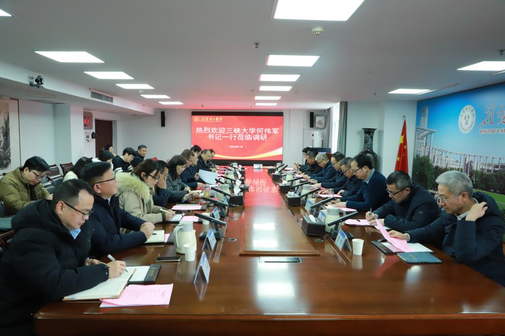 1月21日,伟德官网与三峡大学战略合作签约仪式在行政楼A406会议室举行。三峡大学党委书记何伟军,党委常委、科技发展研究院院长谈云志,伟德官网党委书记武建斌,副校长谭新玉出席活动。仪式由校长张友兵主持。
