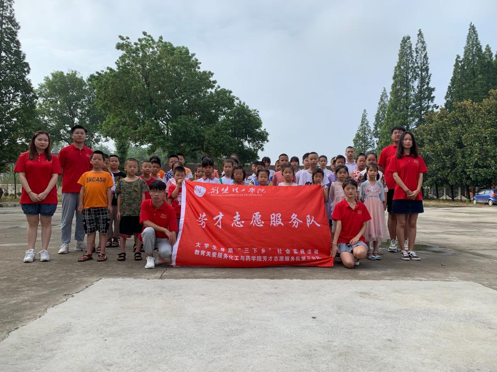 “芳才志愿服务队”自2016年成立以来,始终秉持“用爱心滋养祖国未来花朵、用行动关爱农村留守儿童”的宗旨,连续5年前往钟祥市参加全国大中专学生暑期科技、文化、卫生“三下乡”志愿服务活动。2021年,化工与药学院师生以“学党史、办实事”为宗旨,积极组建由学生党员廖芳楠任队长,学生党员朱凯楠、张雪松、王宪哲、张京、洪艺汇等人为骨干的“芳才志愿服务队”,深入农村传播文化和科技,调研基层社会现状,为基层群众服务。