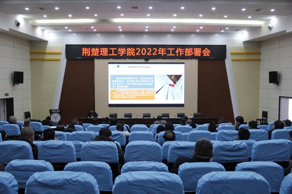 刘建清全面总结了学校2021年工作成绩,安排部署2022年重点工作。他强调,一要进一步增强责任感和使命感,敢于担当作为,不断提升干事创业、争先进位的精气神,奋力开创学校各项工作新局面。二要围绕学校全年重点工作,优化工作方法,完善工作机制,狠抓工作落实,持续提升工作质效,努力推进学校事业高质量发展。三要坚持以师生为本的理念,把主要精力聚焦到特色鲜明的高水平应用型大学建设上,把工作方向聚焦到服务师生上,为教师安心教学科研、为学生全面发展创造更加优良的环境。四要扎实做好新学期开学各项工作,统筹疫情防控、党的建设、教育教学、科学研究、学生管理、后勤服务等工作,全力保障校园安全稳定,确保学校各项工作顺利进行。