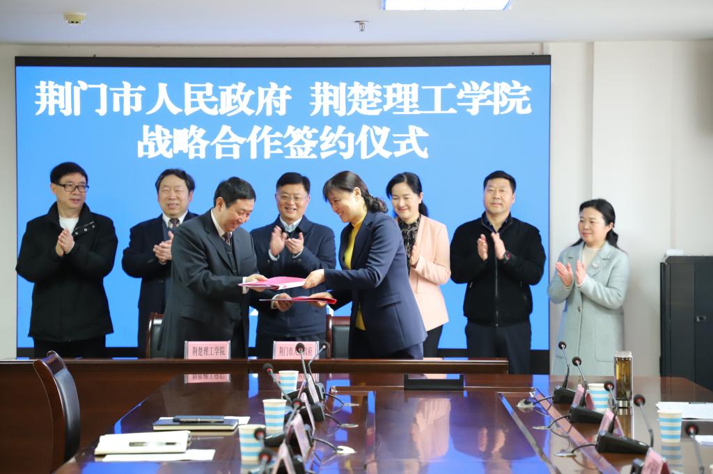 3月31日上午,市长李涛来校调研,与伟德官网党委书记王学民、校长刘建清深入交流。双方签署战略合作协议,进一步深化市校合作,推动高校发挥科技研发、高端人才、创新平台等优势与荆门战略性新兴产业发展深入对接。