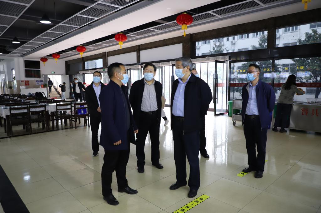 范义虎一行先后到学校快递点、学生食堂等重点区域检查疫情防控工作,了解重点场所管控、环境消杀、食堂日常供应、食品卫生安全、后勤服务保障等各项措施落实情况,听取学校疫情防控和安全工作情况汇报,并就做好疫情防控、校园安全工作提出指导意见。