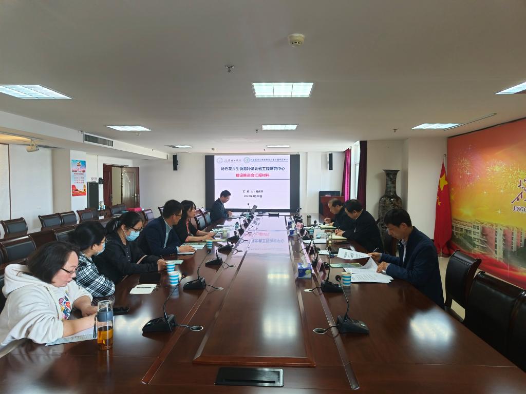 4月20日下午,学校在行政楼A406召开特色花卉生物育种湖北省工程研究中心建设推进会。党委书记王学民、副校长曹甜东出席会议,科技处、财务处负责人和工程研究中心研发人员参加会议。