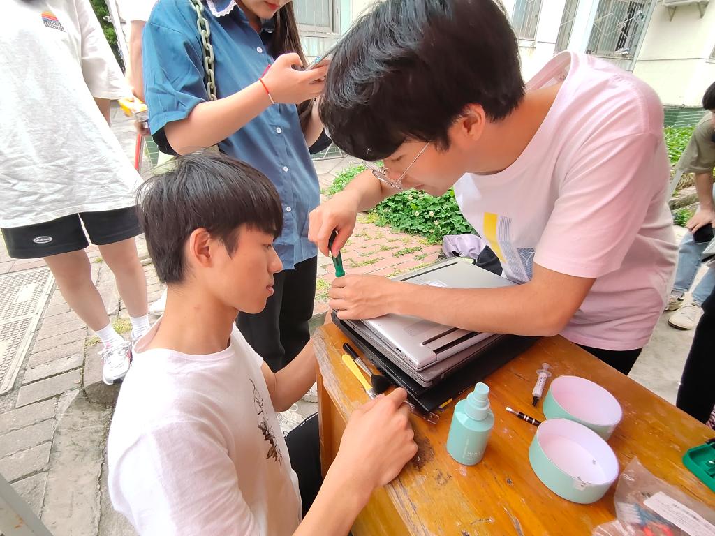 活动现场,志愿者为前来维修电脑的同学们详细解答电脑故障原因和解决方法,帮助同学们排除故障并讲解电脑维修维护知识。此次义务维修活动为学校近百名师生提供了咨询和维修服务。
