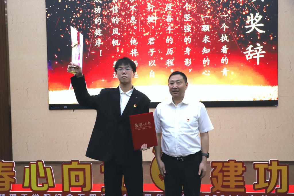 王学民向受到表彰的先进组织和个人表示祝贺,向全校青年团员和共青团干部致以节日问候,希望全校广大团员青年牢记习近平总书记殷殷嘱托,在逐梦奋斗的新征程上释放青春激情,凝聚青春力量,矢志砥砺前行,争做有理想、有本领、有担当、有责任、重实干、讲奉献的时代新人,为把伟德官网建设成为特色鲜明的高水平应用型大学而努力奋斗。