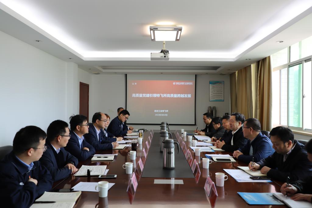 王学民听取中航工业特种飞行器研究所党建工作、人才队伍建设、科技工作等情况介绍,了解研究所高质量党建引领高质量跨越发展情况,就如何发挥双方优势,开展科教合作等深入交流。