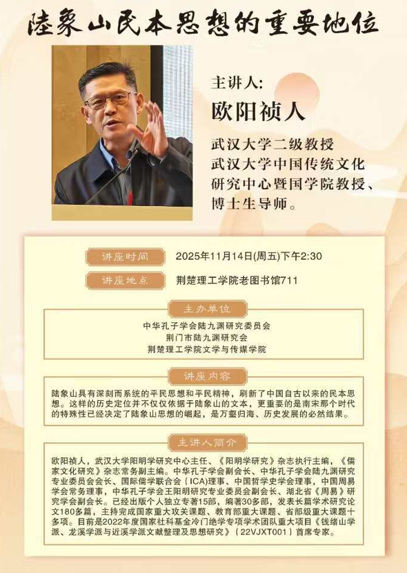 荆楚大讲堂第111期:陆象山民本思想的重要地位