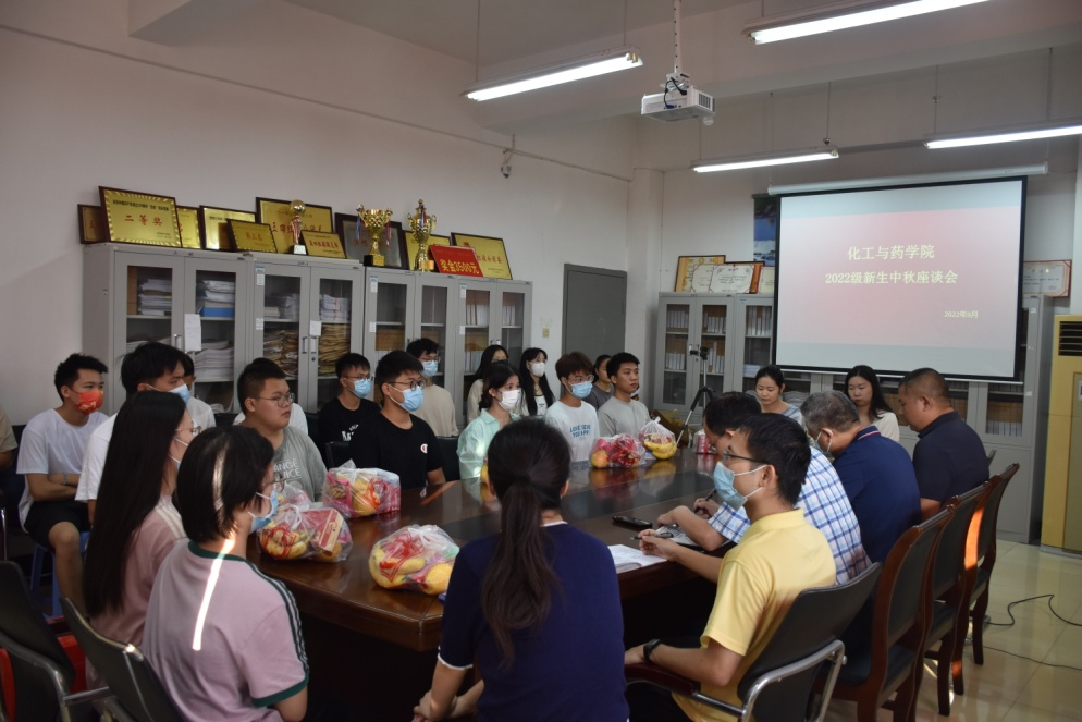 9月10日,正值中秋佳节,化工与药学院在教学楼B2408召开2022级新生座谈会,学院领导班子成员、辅导员及新生代表参会,师生相聚一起,共话团圆。