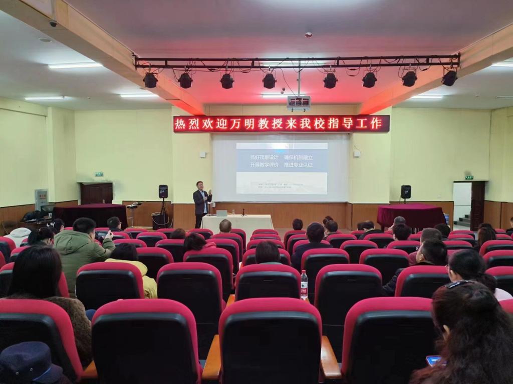 3月22日,万明教授作了题为《抓好顶层设计、确保机制建立、开展教学评价、推进专业认证》的专题讲座。从顶层设计、机制体制、质量监控、质量保障等方面进行了详细的讲解,为学校各专业推进专业认证工作指明了方向。