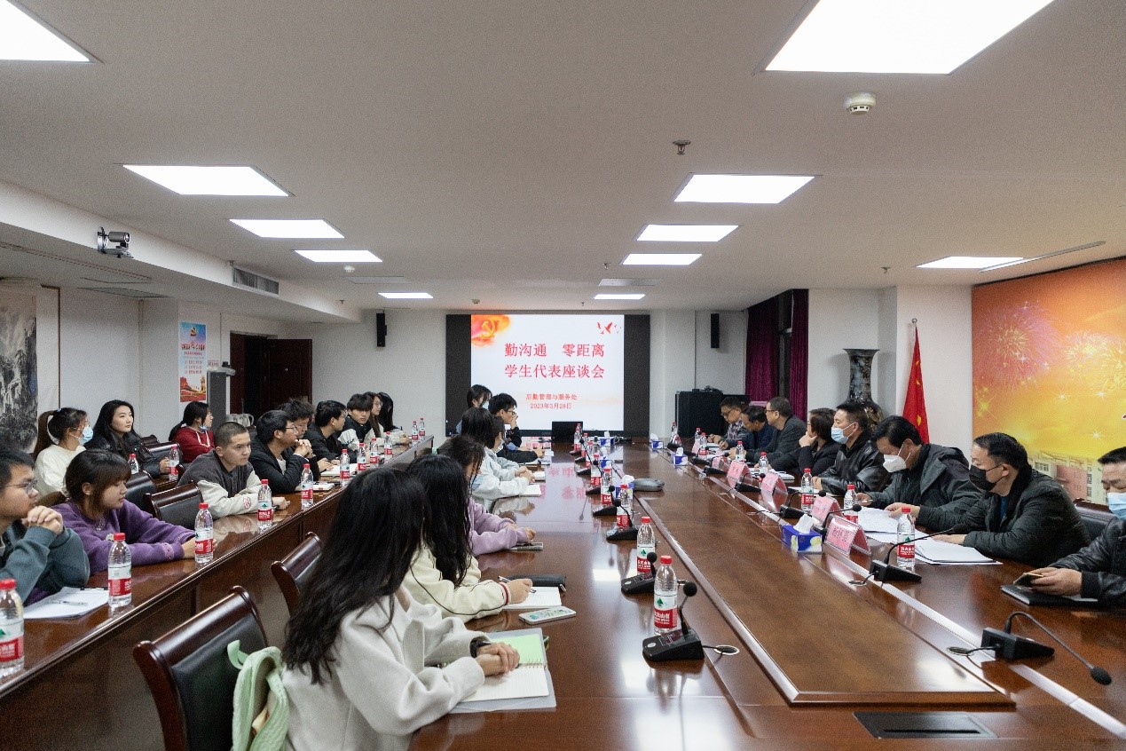 3月28日晚,后勤管理与服务处“勤沟通,零距离”的学生代表座谈会在行政楼A406如期举行。会上,后勤相关负责人与来自各学院20余名学生代表进行面对面交流,认真听取了学生对后勤工作的意见并做出回复。