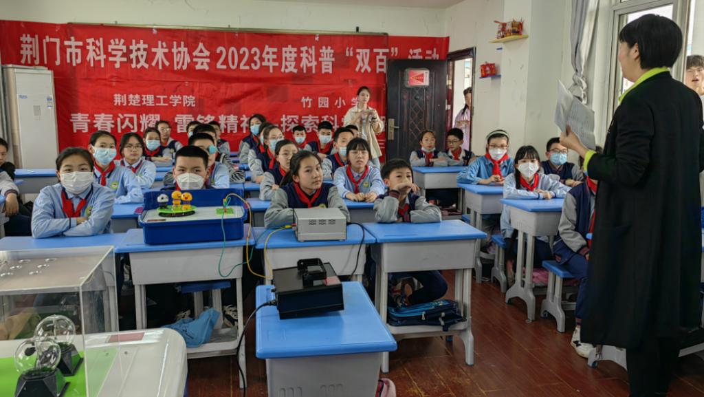 “真神奇,我的头发竟然竖起来了!”“哇,落在中间的小球最多,我猜对啦!”这些都是数理学院科普进校园活动中学生们的反应。近日,数理学院科普团以“青春闪耀,雷锋精神——探索科学之路”为主题,走进荆门市象山小学、竹园小学和青山小学,开展系列科普活动。