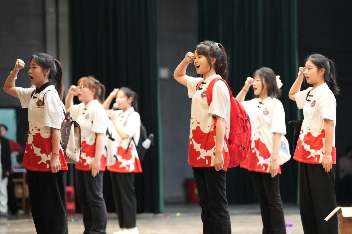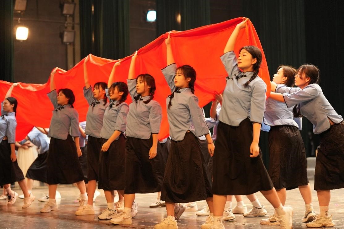 原创三下乡情景剧《待到山花烂漫时》演绎了师范学院知行志愿队“青春向党担使命,匠心助教润新苗”的故事,让现场师生们在沉浸式体验中感受到厚植教育情怀的思政力量。毕业生们以集体舞蹈向敬爱的老师和同学们作了一场深情的告别。最后,汇演在大合唱《我和我的祖国》中落下帷幕。