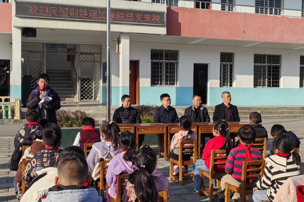 程彻代表民盟荆门市委对活动的顺利开展表示祝贺,对民盟学院总支长期关注并结对帮扶乡镇学校表示肯定,并勉励在校学生保持良好的精神风貌,努力学习,不负期望,争做新时代好少年。