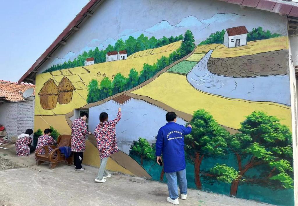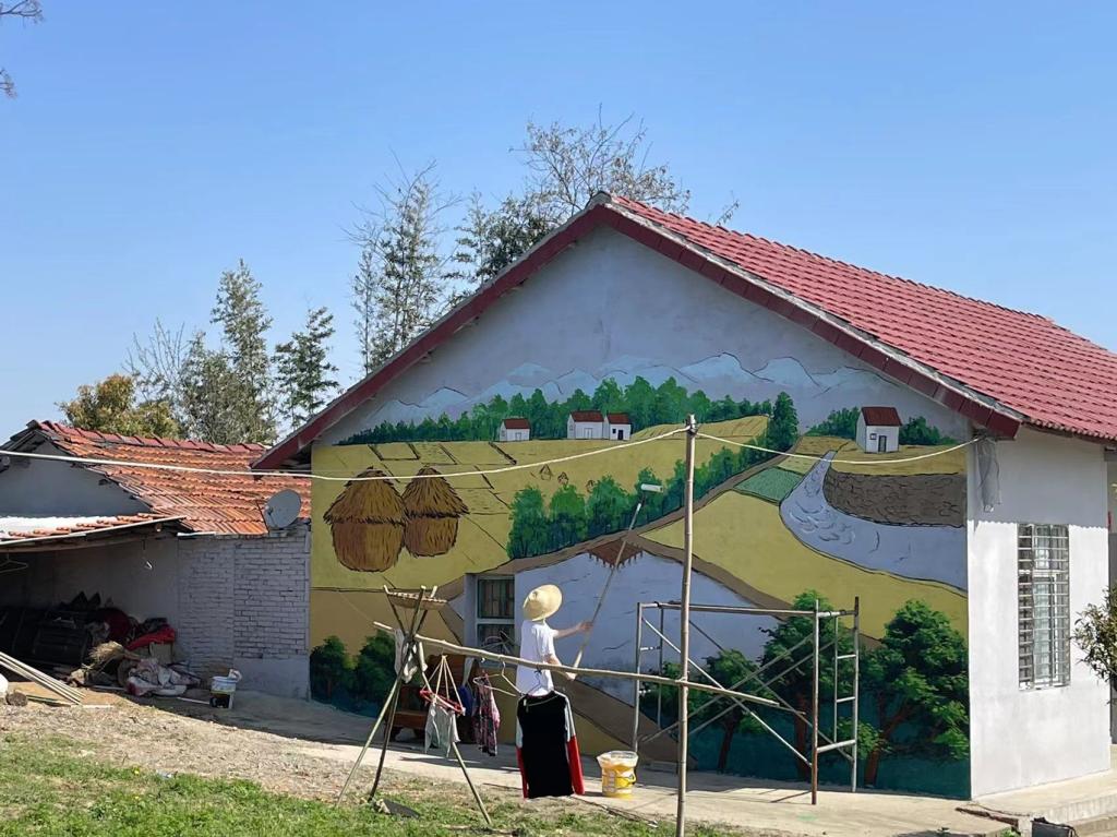 近日,伟德官网艺术学院青年志愿者们走进荆门市沙洋县石鼓村开展墙绘志愿活动,用一幅幅墙体彩绘扮靓和美乡村。