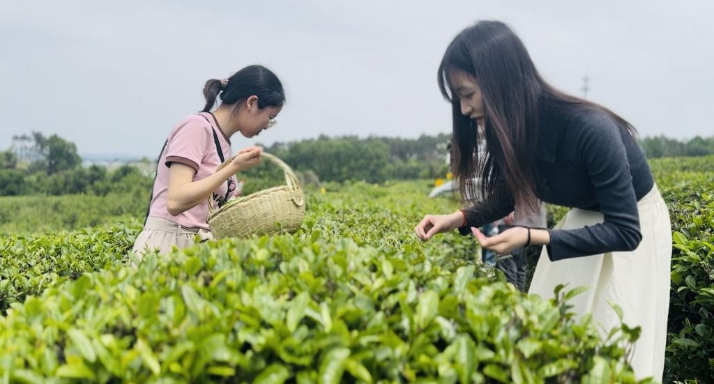 在迎接村,学生跟随茶农学习采茶的技巧,感受传统茶文化的熏陶。采茶活动不仅让学生们了解了茶叶的生长过程和采摘流程,还让他们感受到了劳动与自然的和谐共生。