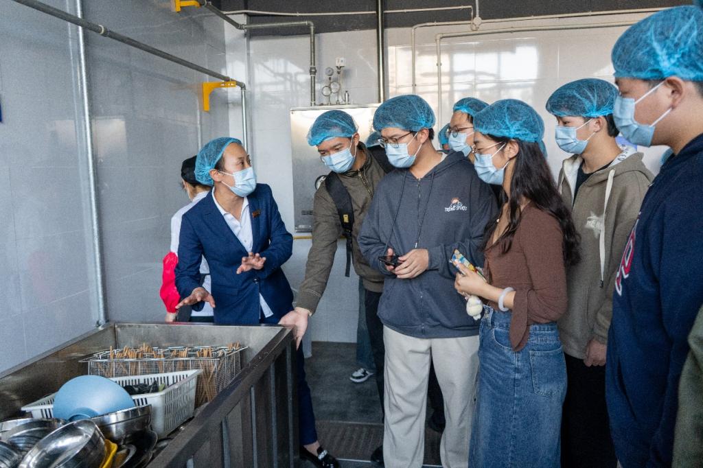 活动现场,师生代表有序走进食堂后厨,参观操作间、售卖间、餐具洗消间、留样间、食品库房等场所,深入了解了不同食材的采购流程、保存、处理、烹饪和留样的操作方式,对后厨运作的管理制度以及食堂的日常工作有了更加直观的感受,与食堂后厨来了一次“零距离”的接触。在参观活动结束后,师生代表对厨房区域的整洁卫生环境、规范化的操作流程以及有序的工作现场给予了充分的肯定与高度评价。