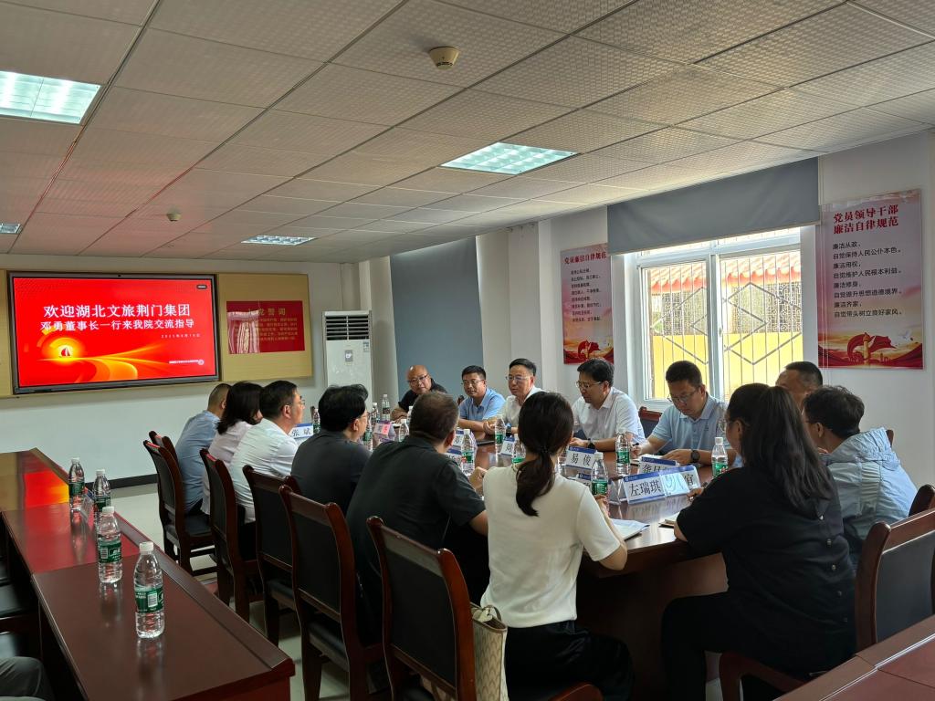 近日,湖北文旅荆门集团有限公司党委书记董事长邓勇一行来校进行交流指导。文学与传媒学院班子成员、科技处相关负责人及产业研究院院长参加活动。
