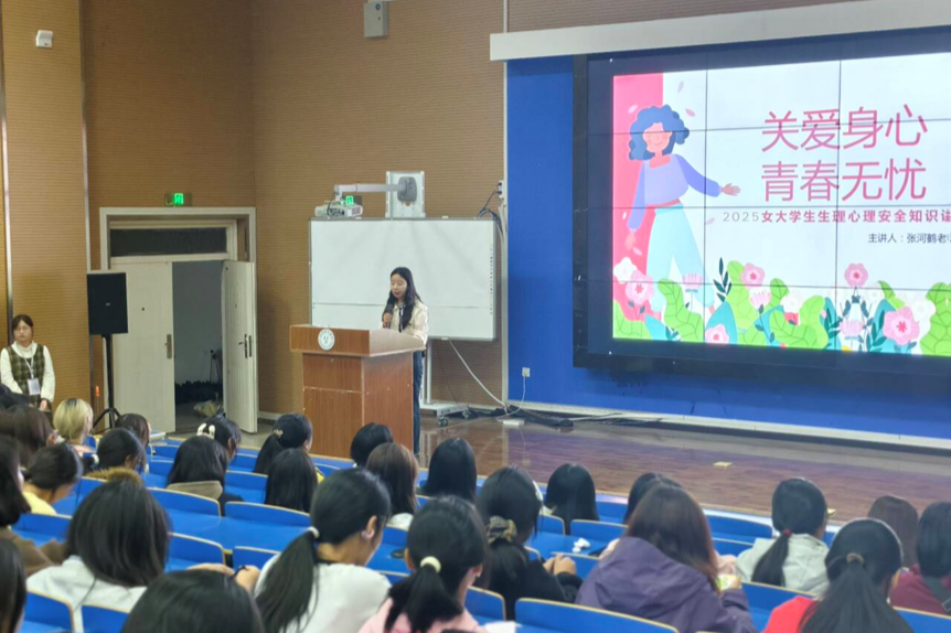 为切实守护女大学生身心健康,筑牢青年成长安全防线。近日,经济与管理学院于钟楼三楼无边界阶梯教室举办“关爱身心,青春无忧”女大学生生理心理安全知识讲座。学院全体领导班子成员、全体辅导员及300余名女大学生参加活动。