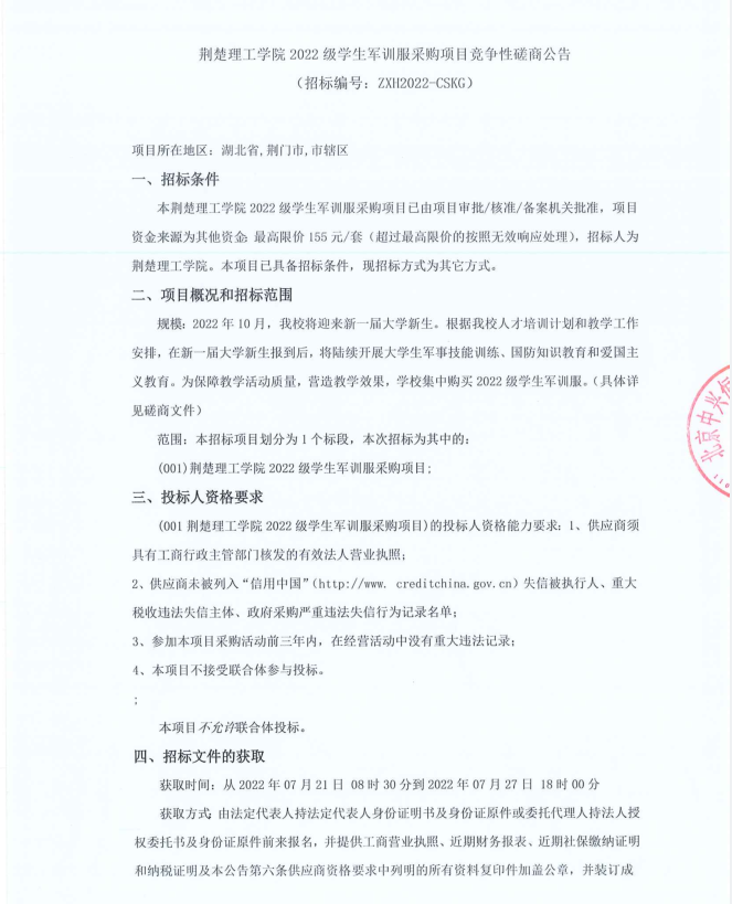伟德国际英国2022级学生军训服采购项目竞争性磋商公告(推送)