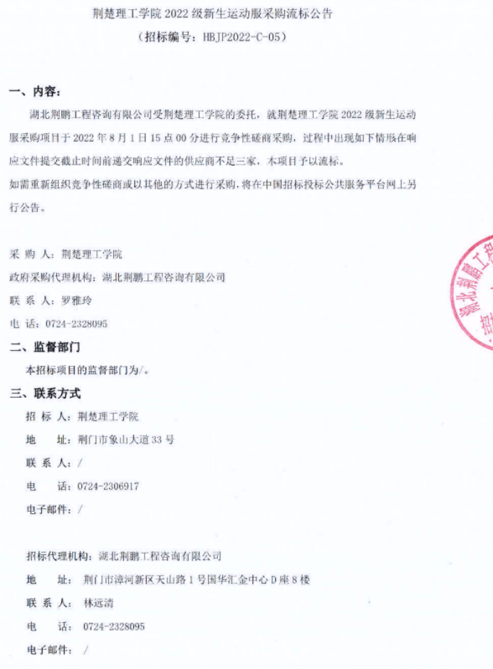 伟德国际英国2022级新生运动服采购流标公告(推送)