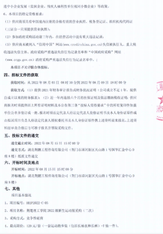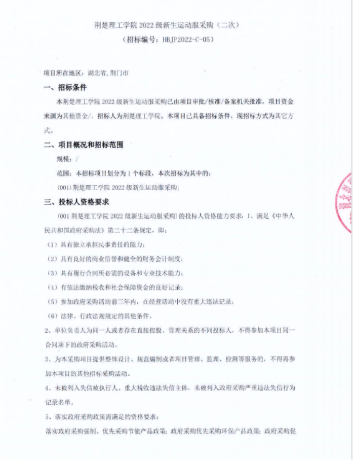 伟德国际英国2022级新生运动服采购项目招标公告(二次)(推送)